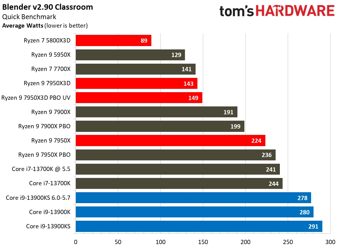 The biggest thing AMD Ryzen 9 7950X3D achieved, however, was doing all this with extraordinary power efficiency. While Tom’s Hardware didn’t give us the power usage for the games, in rendering benchmarks, it showed that Ryzen 9 7950X3D consumed half, yes, we repeat, half the power than the Intel Core i9-13900K CPU. This is something we feel is unheard of.