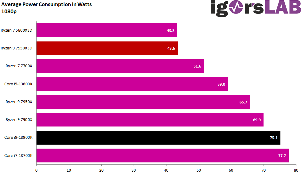 Here too, AMD Ryzen 9 7950X3D showed great power efficiency in gaming. So much so that Igor says “it’s an outright humiliation” for both Intel and other AMD Ryzen 7000 processors.